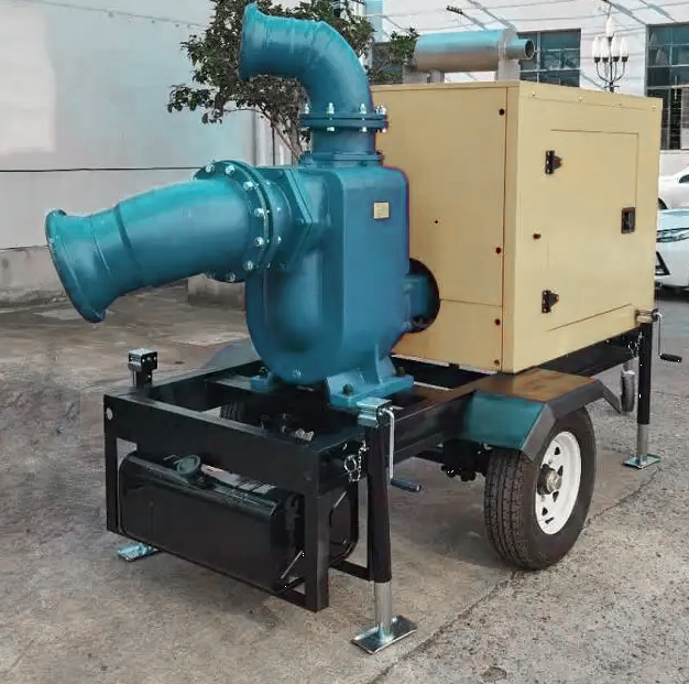 拖車式移動泵站是在反復(fù)研究國內(nèi)外同類技術(shù)的基礎(chǔ)上開發(fā)成功的一種結(jié)構(gòu)新穎的產(chǎn)品。該泵組集自吸和無堵塞排污于一體,采用柴油機驅(qū)動軸向回流外混式,并通過泵體、葉輪流道的獨特設(shè)計,使用時不需要安裝底閥和灌引水。泵組可吸排含有大顆粒固體和長纖維雜質(zhì)液體,可廣泛適用于市政排污及防澇工程、農(nóng)業(yè)灌溉等。該泵組具有結(jié)構(gòu)簡單、自吸性能好、排污能力強、高效節(jié)能、使用維修方便、一體式或戶外型可移動設(shè)計等特點.