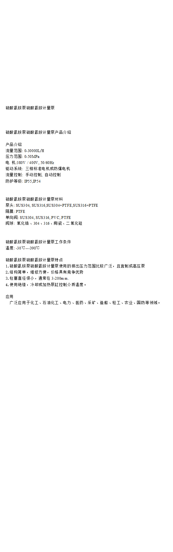 硫酸氫銨泵硫酸氫銨計(jì)量泵