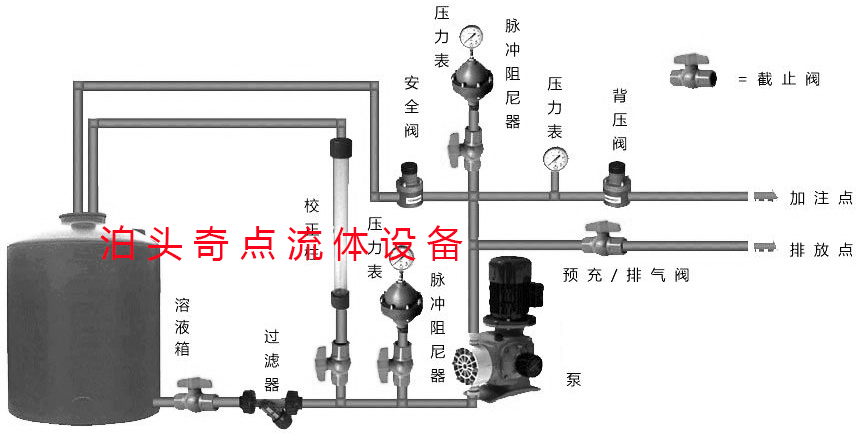 磷酸鹽泵磷酸鹽計(jì)量泵磷酸鹽加藥泵系統(tǒng)安裝流程圖