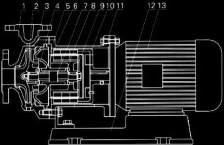 溶劑油泵,通常由電動機,磁力偶合器和耐腐蝕離心泵組成。其主要特點是利用磁力偶合器傳遞動力,完全無泄漏,當電動機帶動磁力偶合器的外磁鋼旋轉(zhuǎn)時,磁力線穿過問隙和隔離套,作用于內(nèi)磁鋼上,使泵轉(zhuǎn)子與電動機同步旋轉(zhuǎn),無機械接觸地傳遞扭矩。在泵軸的動力輸入端,由于液體被封閉在靜止的隔離套內(nèi),沒有動密封因而完全無泄漏。